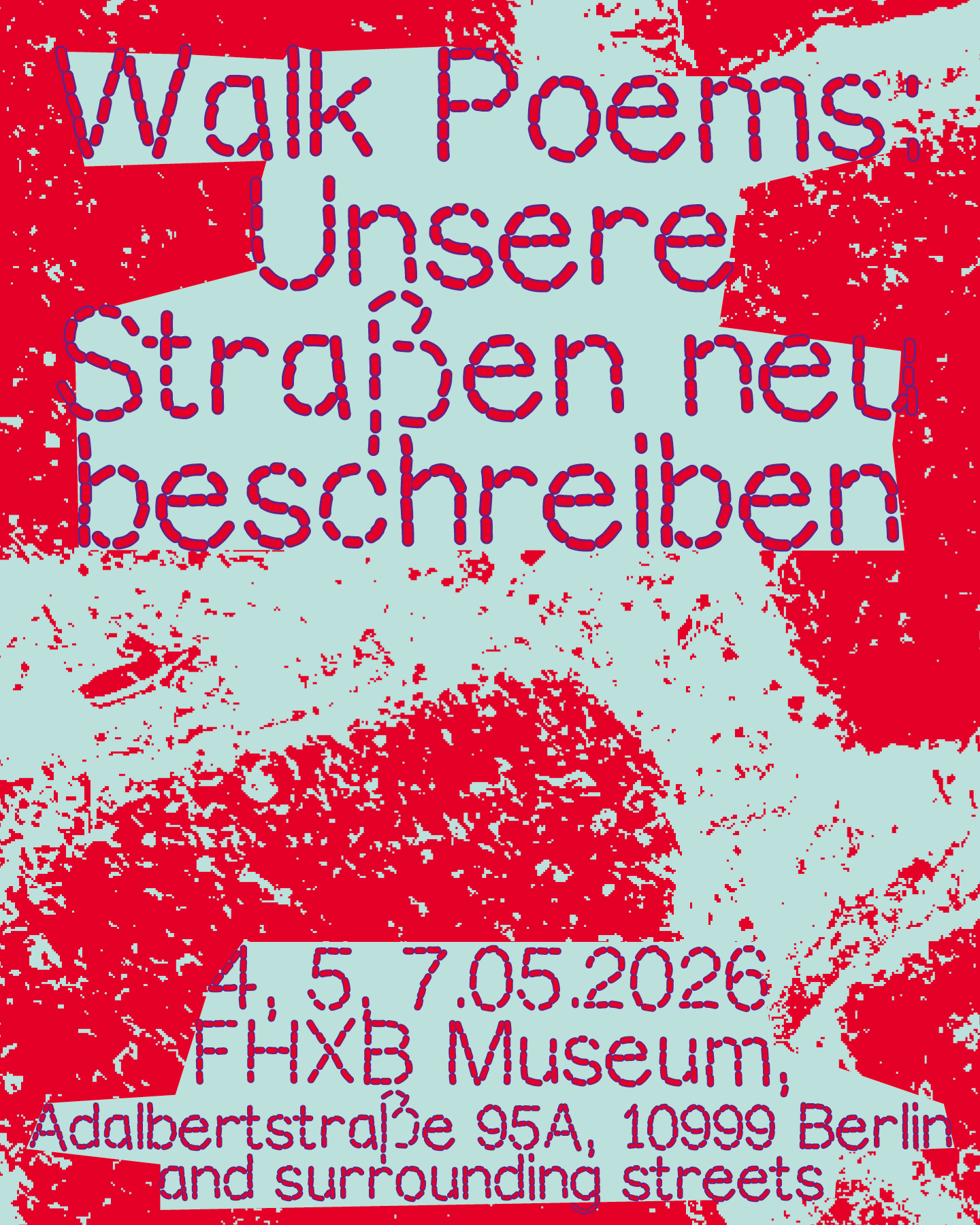 A series of three artist-led workshops that explore the neighborhood around Friedrichshain-Kreuzberg Museum and Kottbuser Tor through walking and writing. By collecting fragments and feelings from the streets, the project explores public space as a shared, poetic resource.